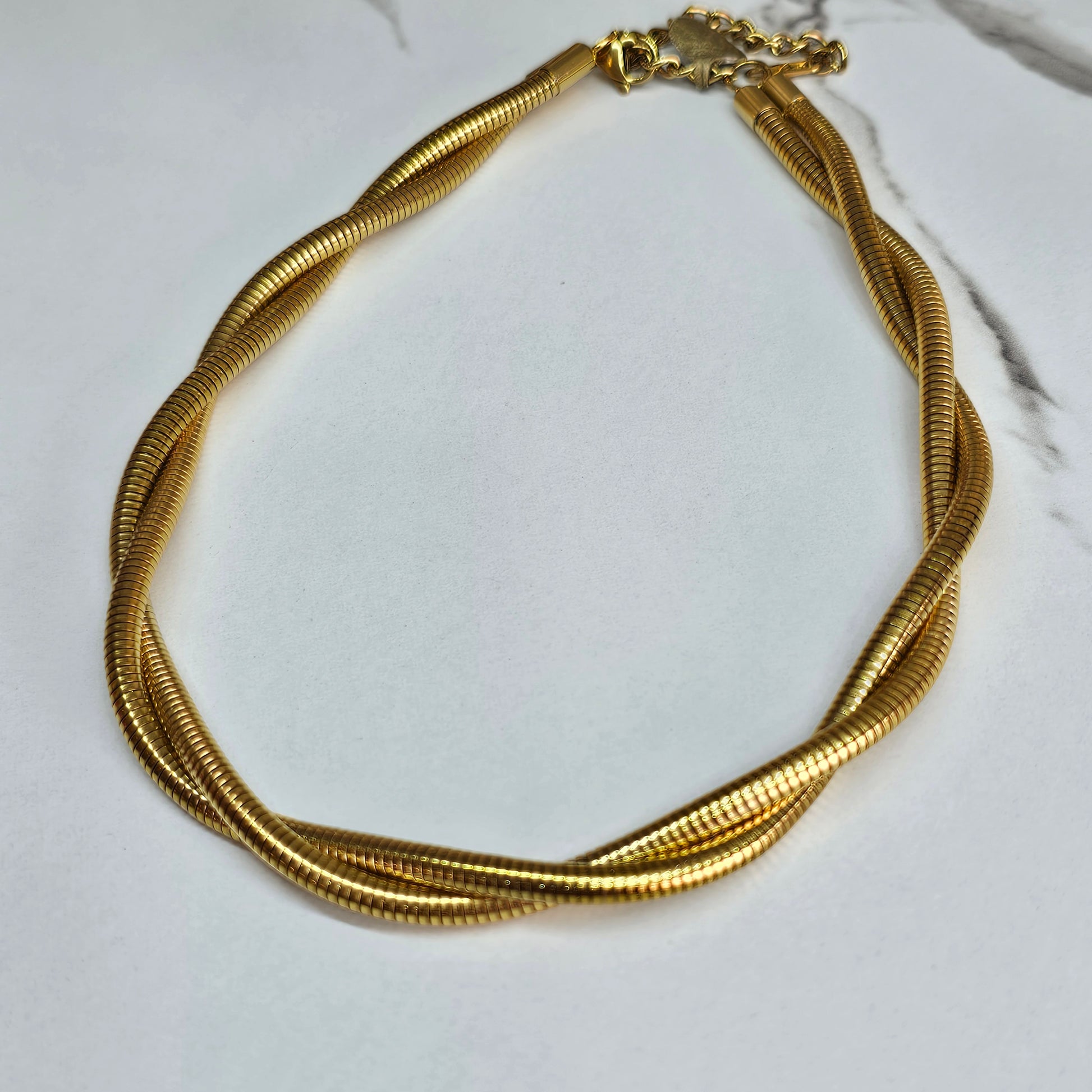 Gargantilla ajustable de tubo en acero dorado.