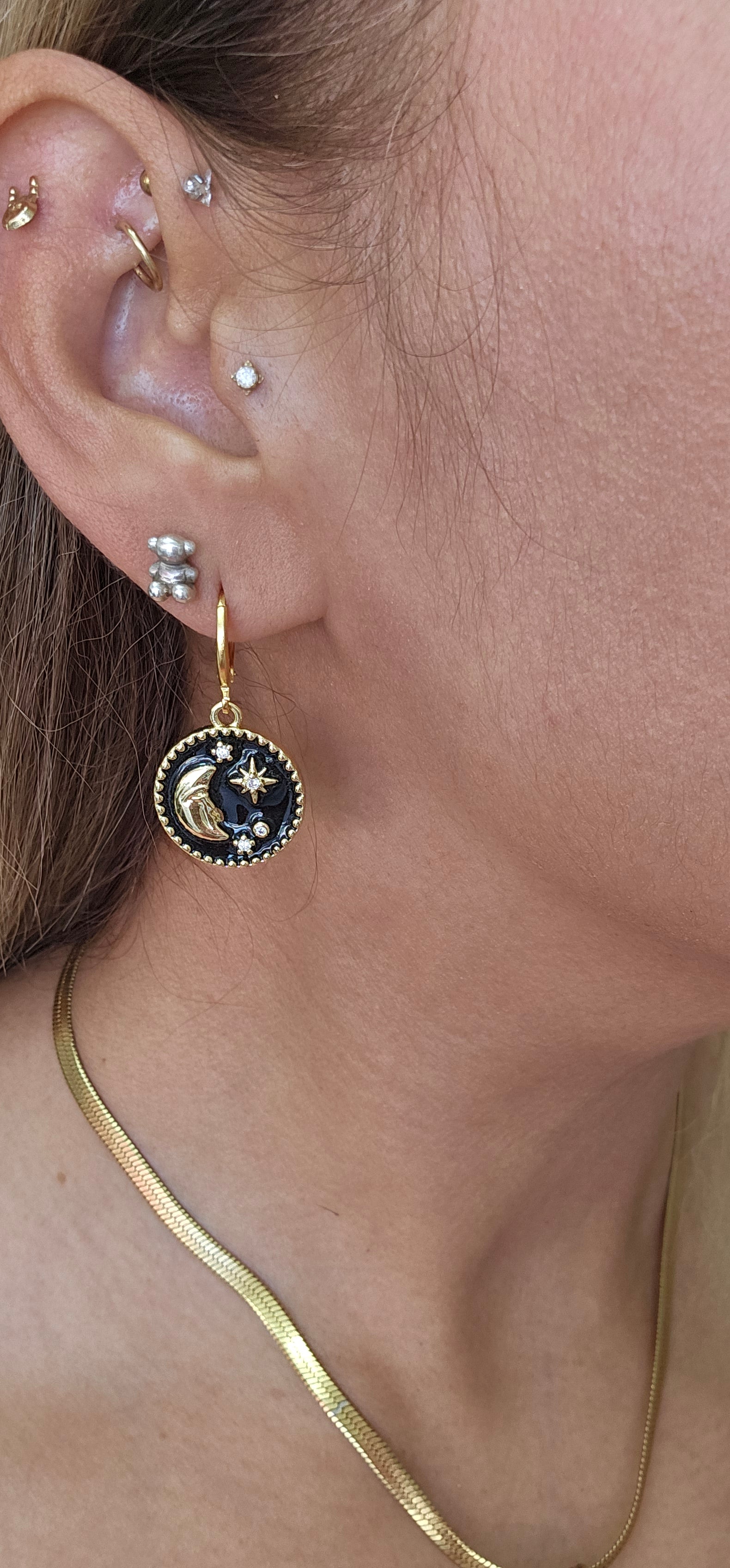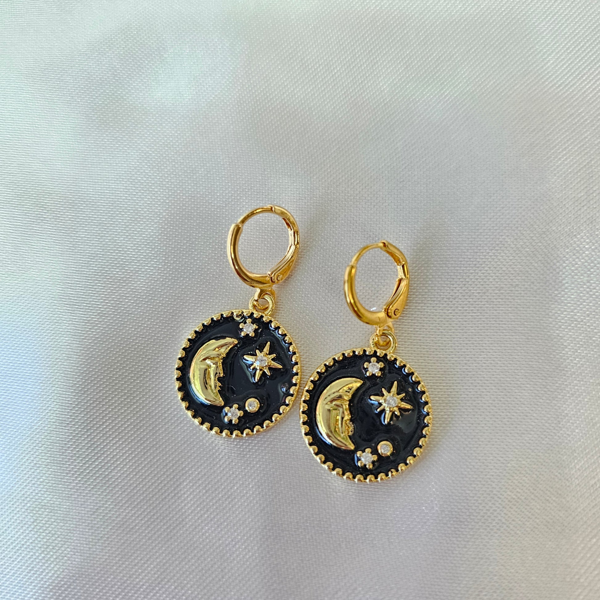 Huggies bellos con lulnitas y estrellitas en un fondo negro.